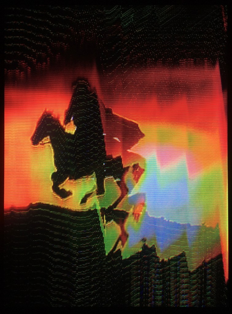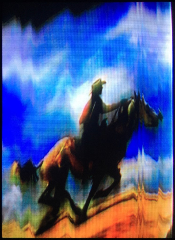 Consisting primarily of western related imagery, Purple Light establishes a sub-genre of the Glitch Art movement the artist calls “Western Glitch” and simultaneously encourages viewers to ponder what “The Cowboy” represents and means to them related to the subjects of Iconography and American Identity.